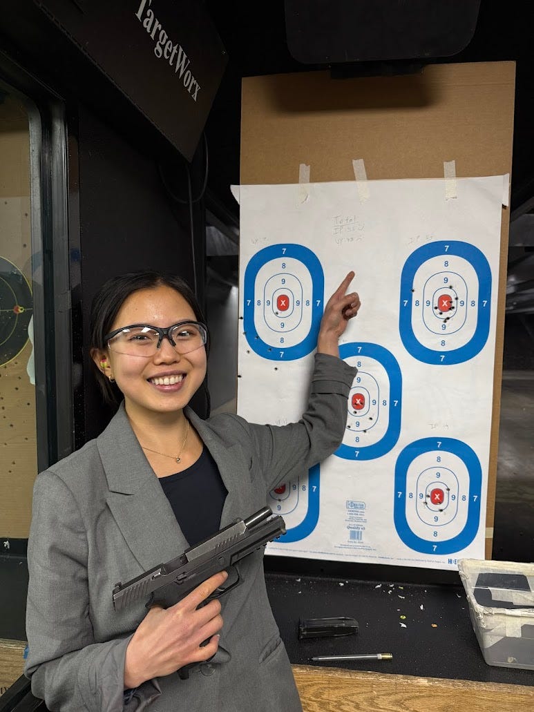 Just 30 minutes outside of D.C., the shooting range is a microcosm of a different side of America. A middle-aged white man had proudly stuck a noticeable DOGE sticker on his monstrous backpack. I stared into the black beaded eyes of dead animals hung as trophies on the unassuming off-white walls.